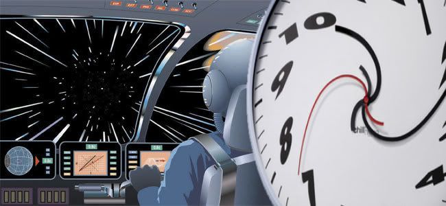 Okeh, jika Anda menggunakan seluruh energi di jagat raya untuk pesawat ruang angkasa Anda, Anda mungkin bisa mendekati kecepatan cahaya. Seberapa dekat? Kecepatan cahaya tepatnya 299,792,458 meter/detik. Dan Anda bisa mencapai antara kira-kira 1 x 10-30 meter/detik dari angka itu - udah bagus banget. Taruhlah Anda mencapai kecepatan itu, apa yang akan terjadi?